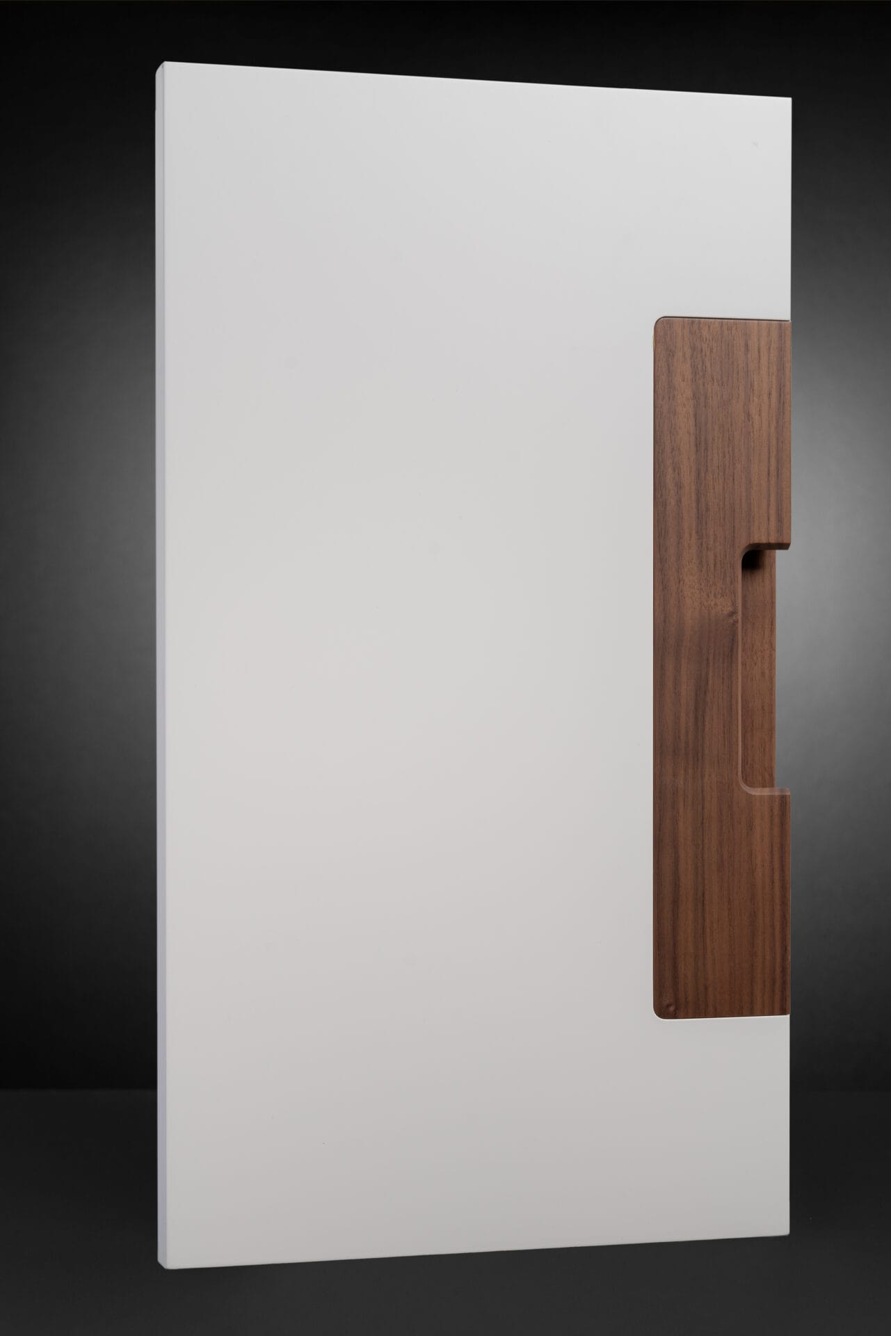DETAILSFinger Pull D21096 Finger Pull D21096Door MaterialBlack Walnut VG Finger Pull & PaintedDoor TypeSlabColourBW Natural Lacquer Stain Zero Sheen Painted Shore White Matte